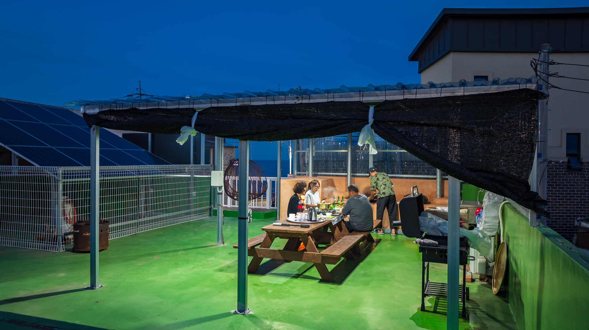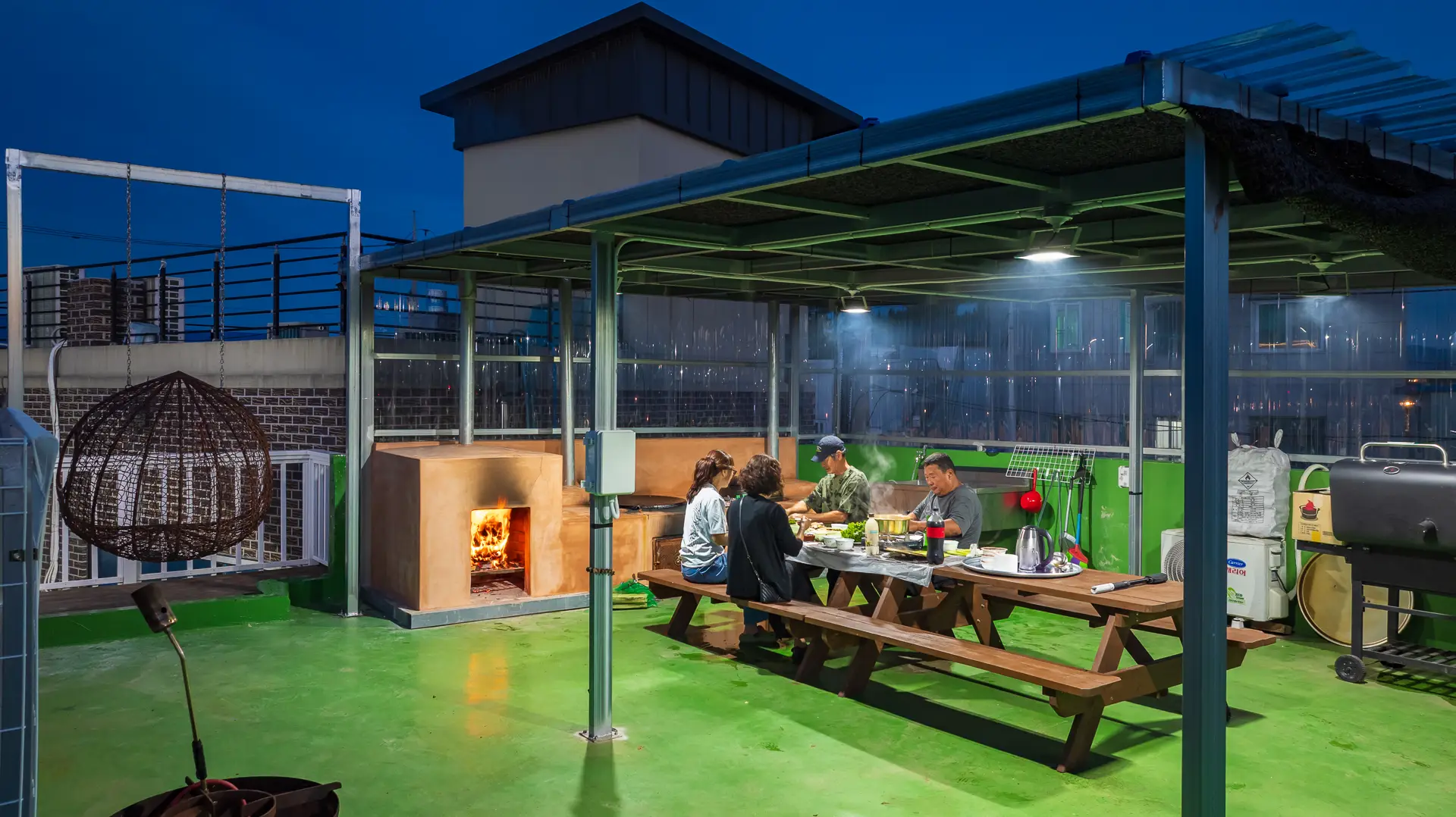펜션 바로앞 사천해수욕장애견 동반 가능 독채스테이노래방 미디어룸 완비루프탑 가마솥뚜껑 개별바베큐장